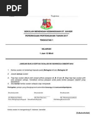 Peperiksaan Pertengahan Tahun Sejarah Tingkatan 1 2017 Pdf